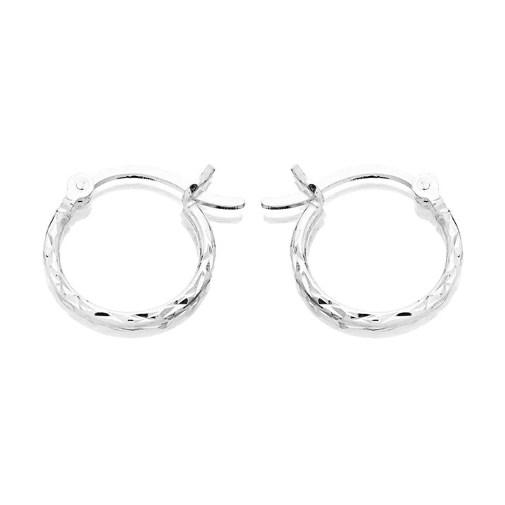 Silver Diamond Cut Hoop Earrings - 13mm - F1354