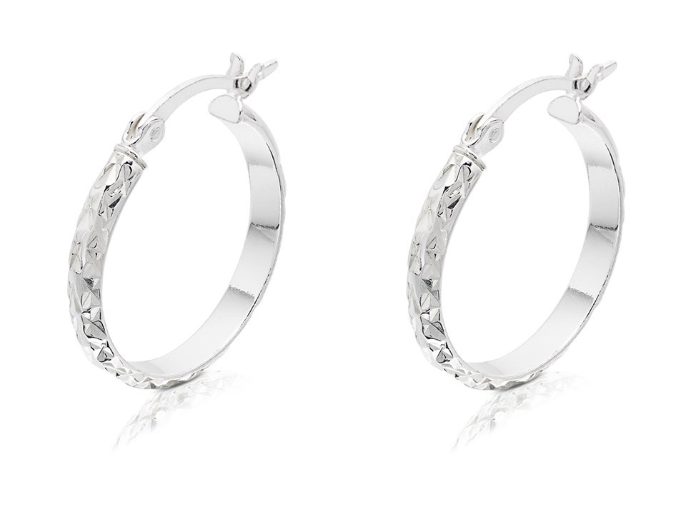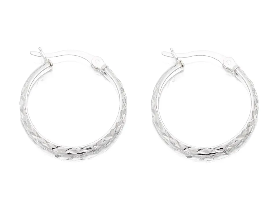 Silver Diamond Cut Hoop Earrings - 20mm - F13002