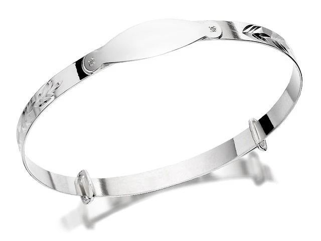 Silver Diamond Set Identity Expanding Baby Bangle - F2633