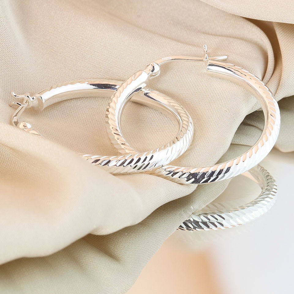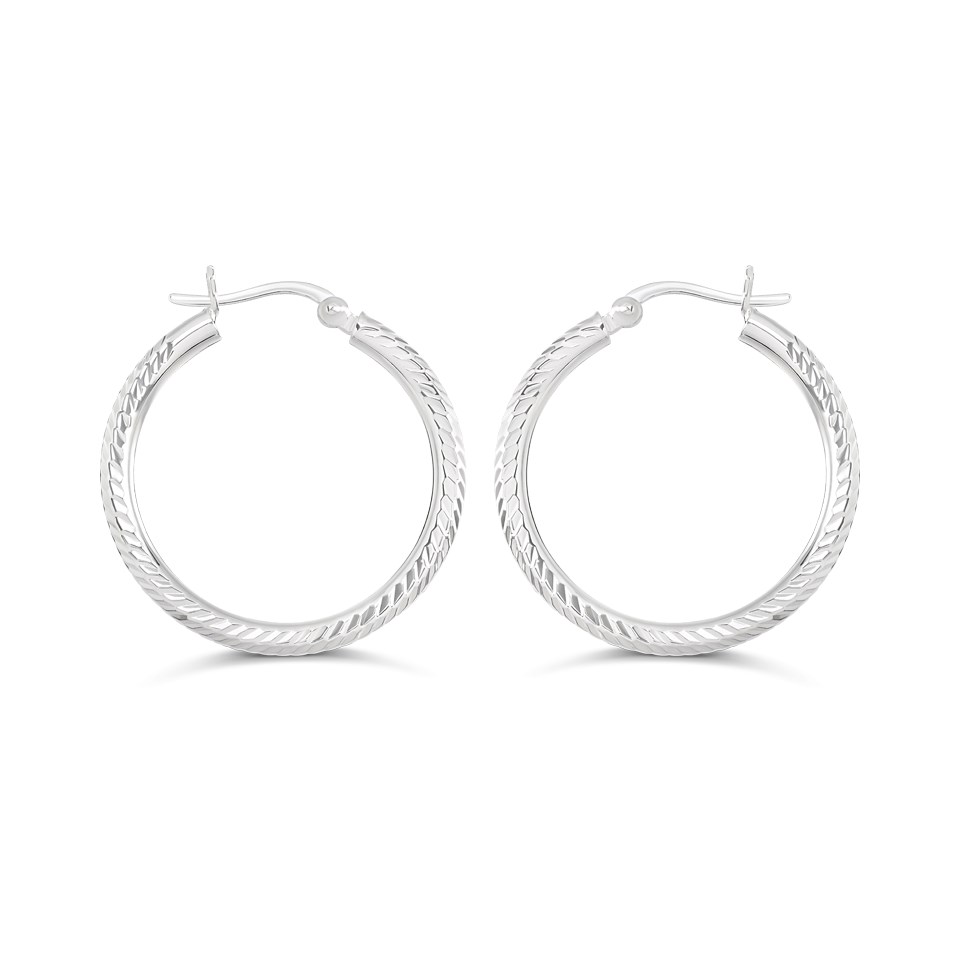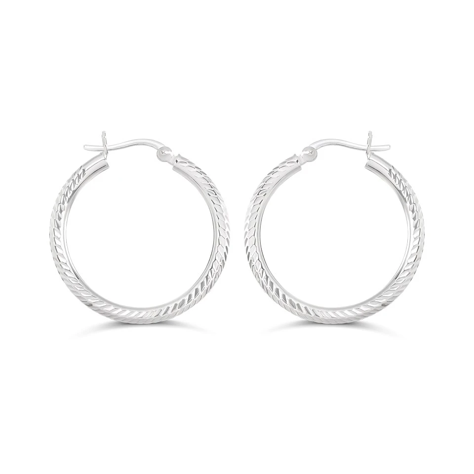 Silver Diamond-Cut Hoop Earrings - 30mm - F13027