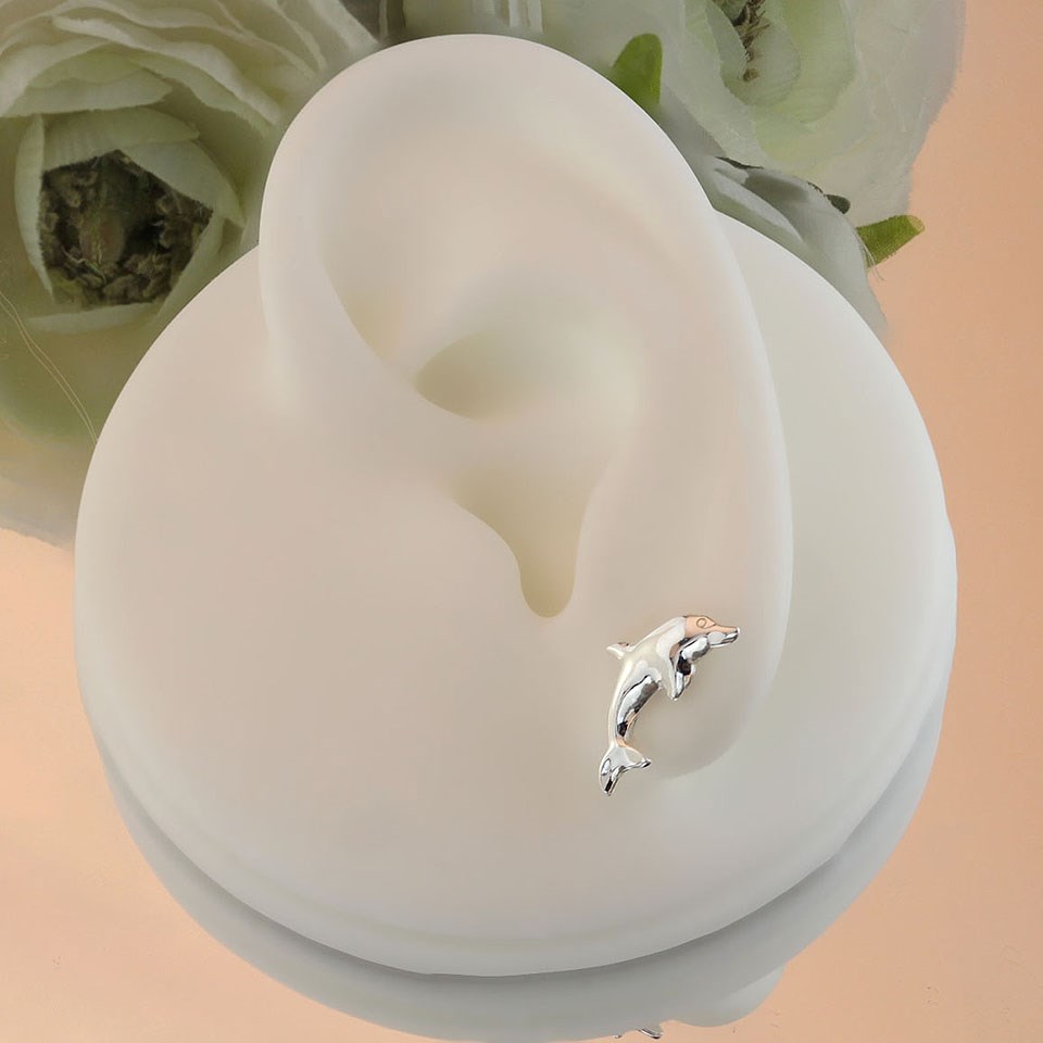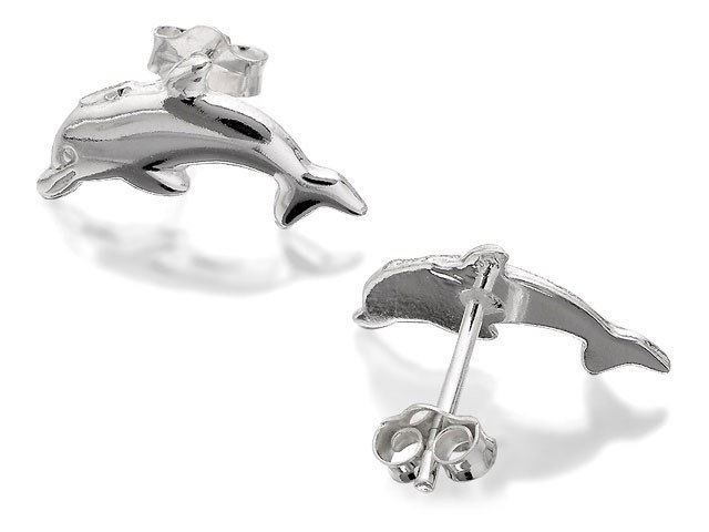 Silver Dolphin Stud Earrings - 15mm - F0271