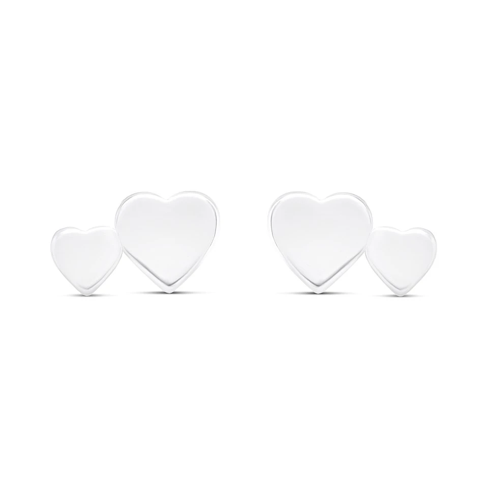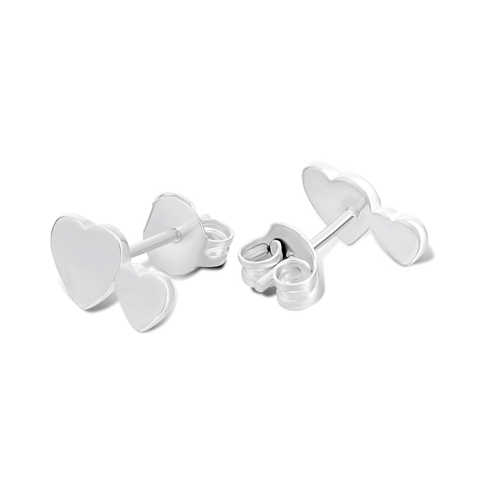 Silver Double Heart Stud Earrings - 10mm - F01021