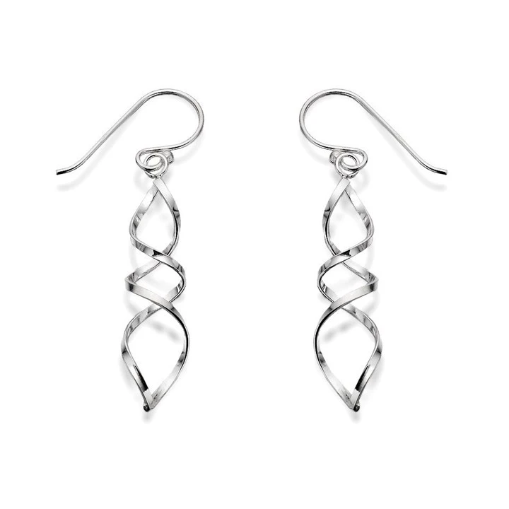Silver Double Spiral Hook Wire Earrings - 40mm drop - F0527