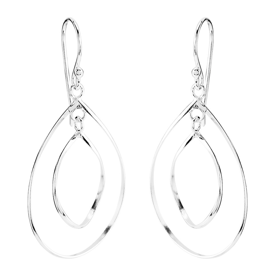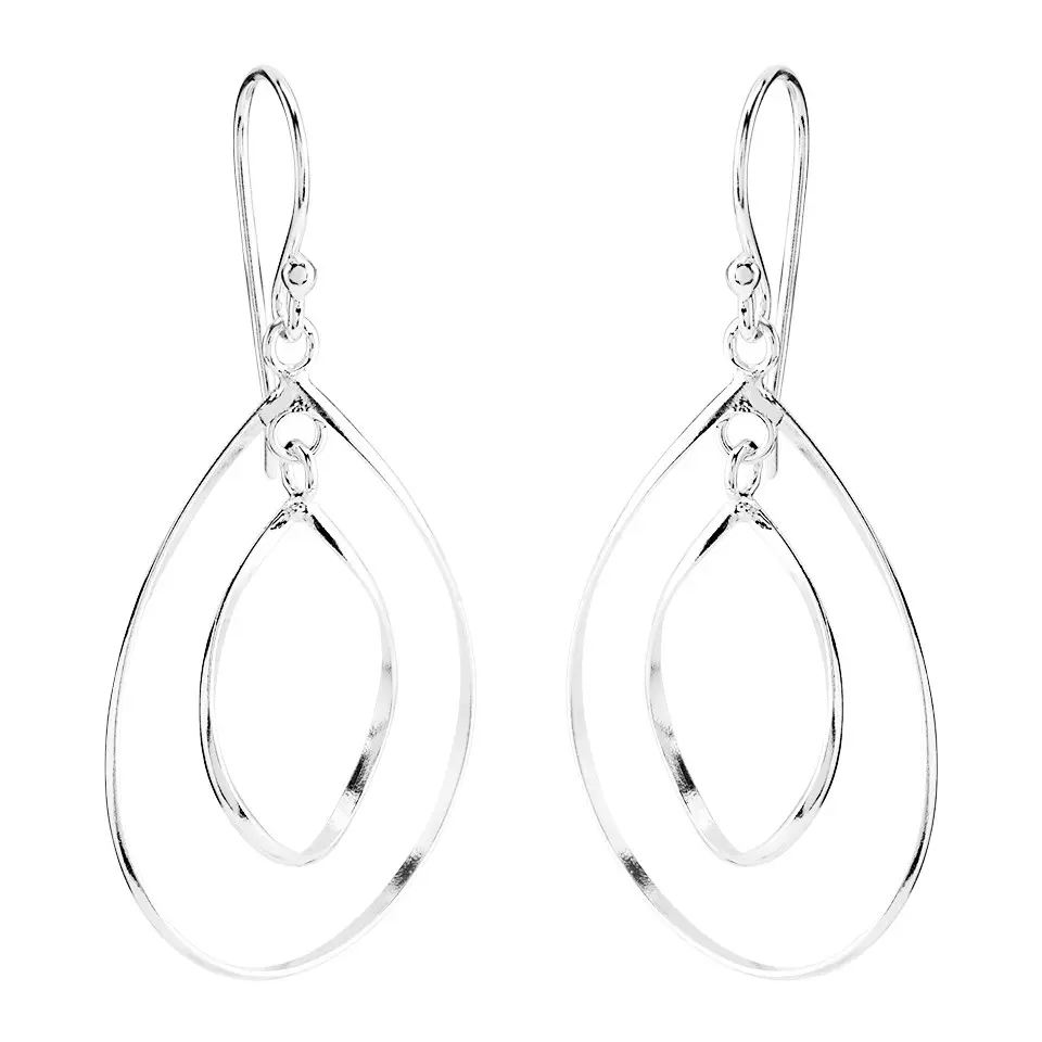 Silver Double Teardrop Hook Wire Earrings - 43mm drop - F05023