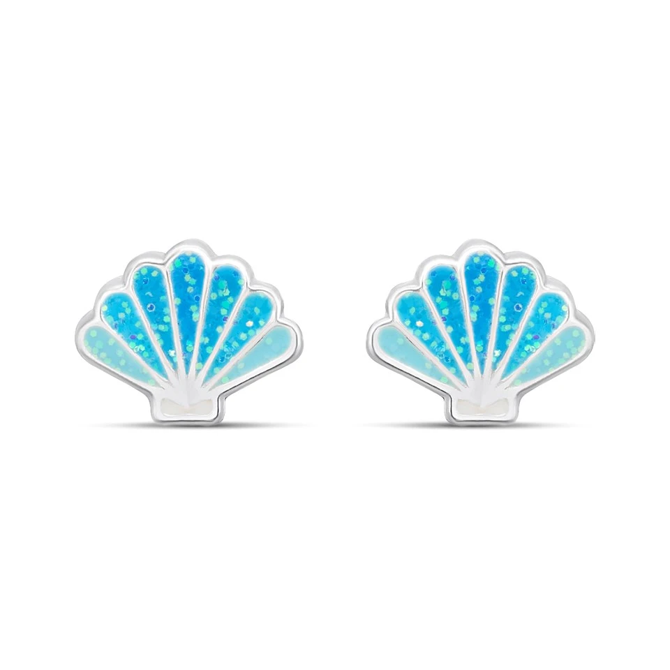 Silver Enamel Blue Shell Stud Earrings- 8mm - F0160