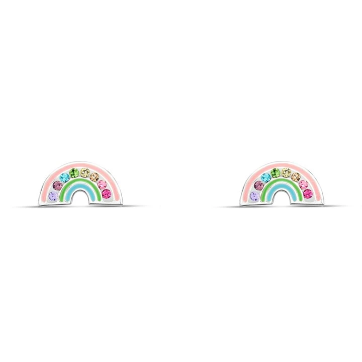 Silver Enamel Crystal Rainbow Stud Earrings- 10mm - F04234