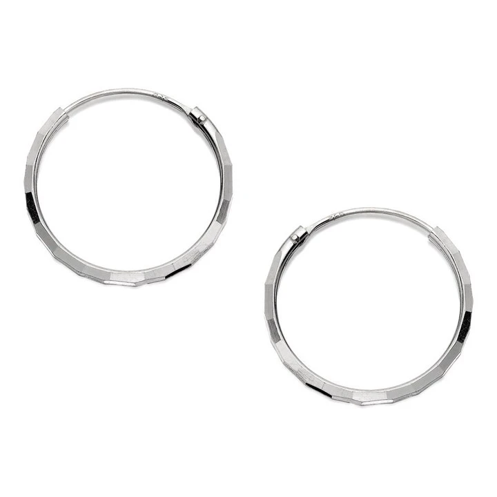 Silver Facetted Hoop Earrings - 20mm - F1343