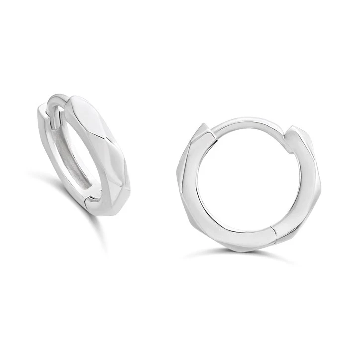 Silver Facetted Huggie Hoop Earrings - 11mm - F13134