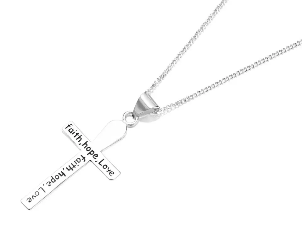 Silver Faith, Hope, Love Cross And Chain - F3623