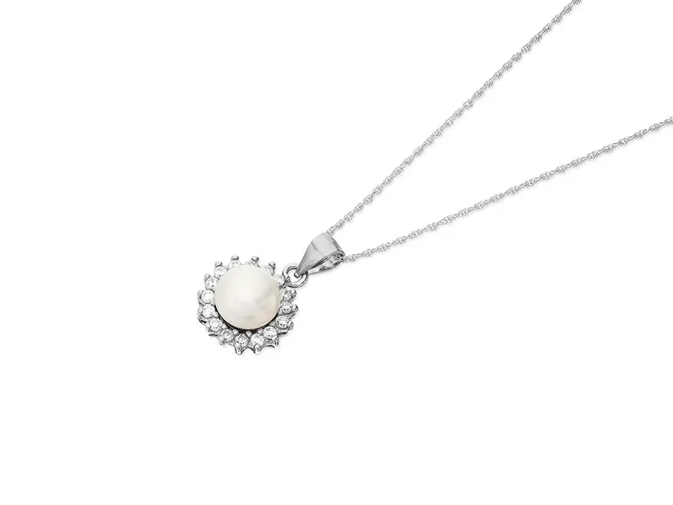 Silver Freshwater Pearl And Cubic Zirconia Necklace - F33012