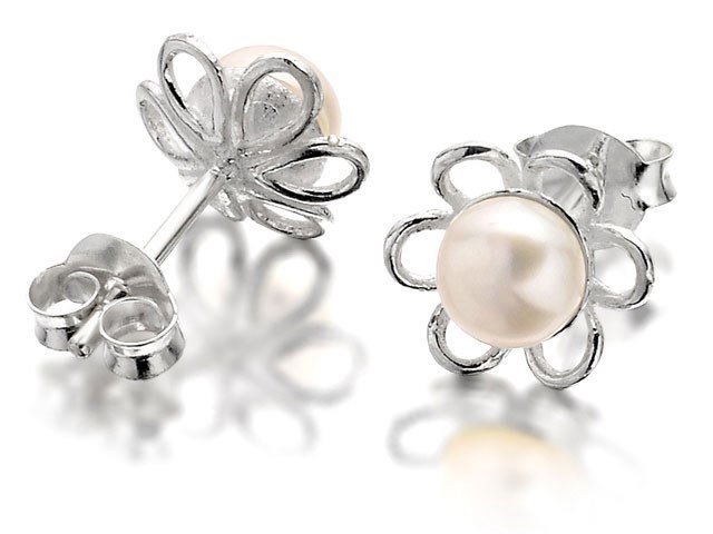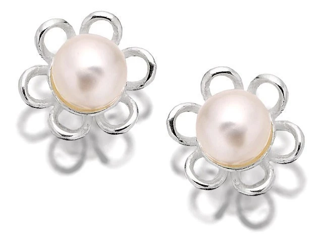 Silver Freshwater Pearl Flower Stud Earrings - 9mm - F0352