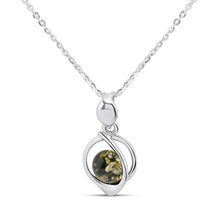 Silver Green Amber Floating Necklace - F3423