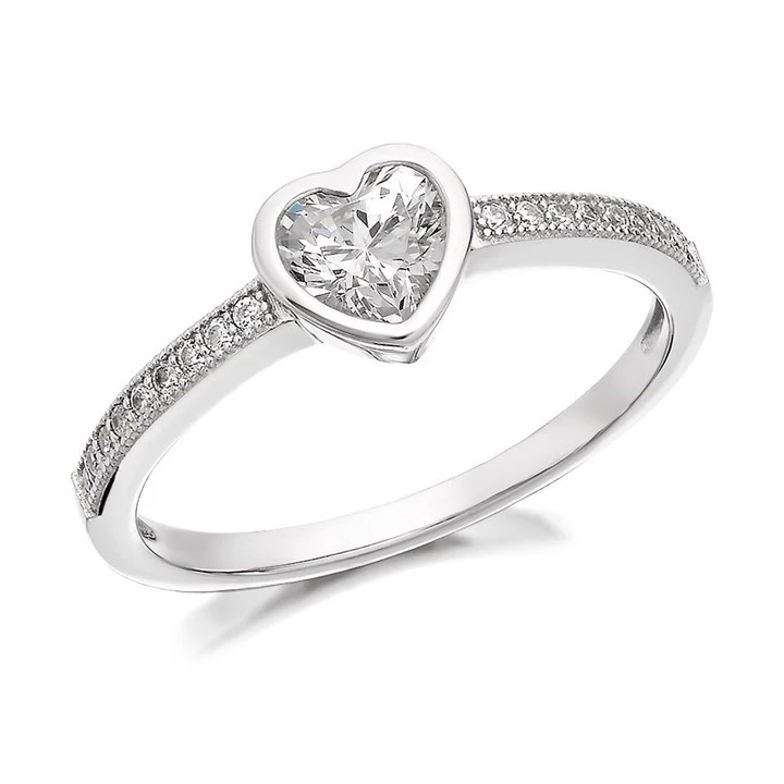 Silver Heart Cubic Zirconia Ring - F6006