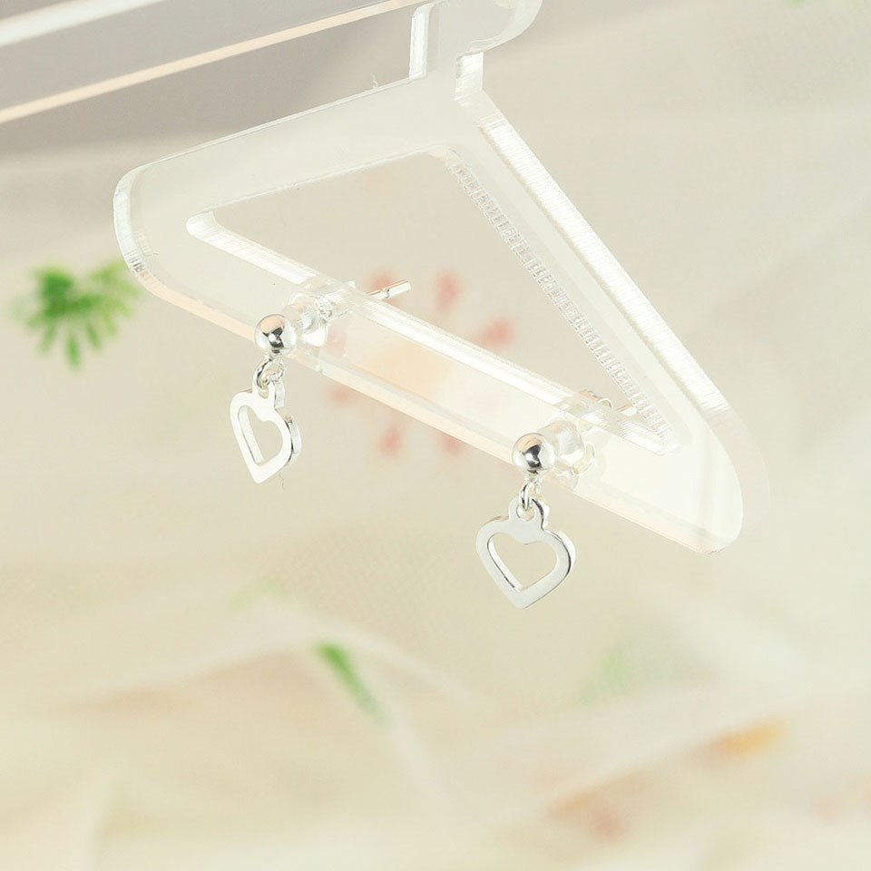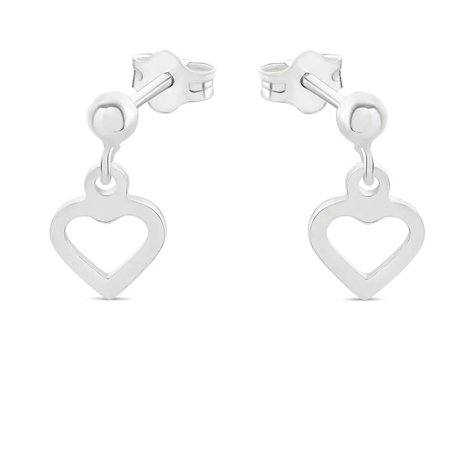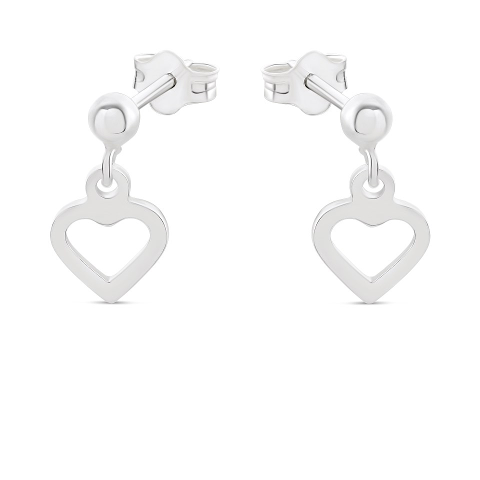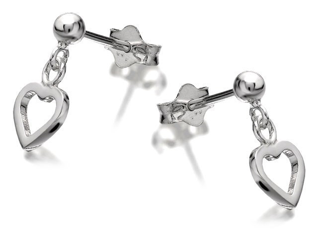 Silver Heart Drop Earrings - 11mm drop - F1066