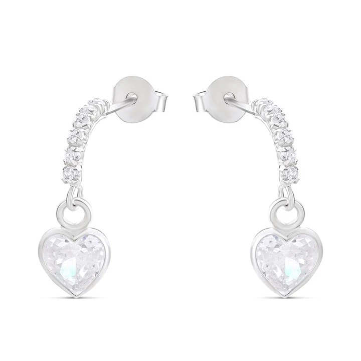 Silver Heart Drop Earrings - 20mm drop - F11012