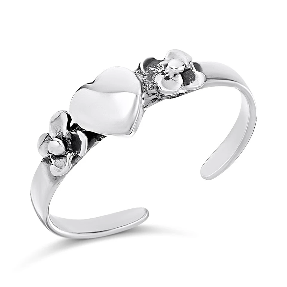 Silver Heart Flower Toe Ring - F5605
