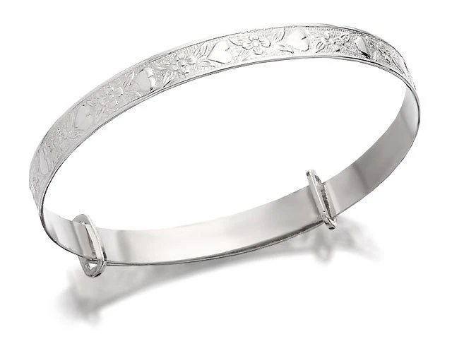 Silver Hearts And Flowers Expanding Baby Bangle - F2637