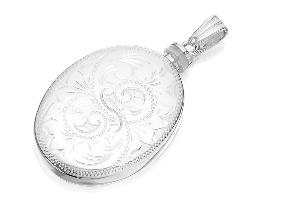 Silver Heavyweight Engraved Oval Memorial Locket - Z4006