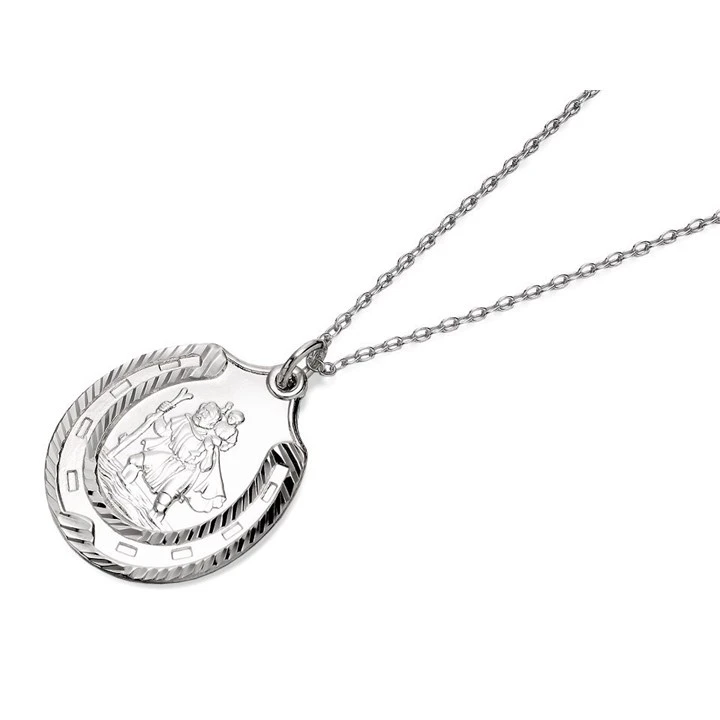 Silver Horseshoe St. Christopher And Chain - 21mm - F4534