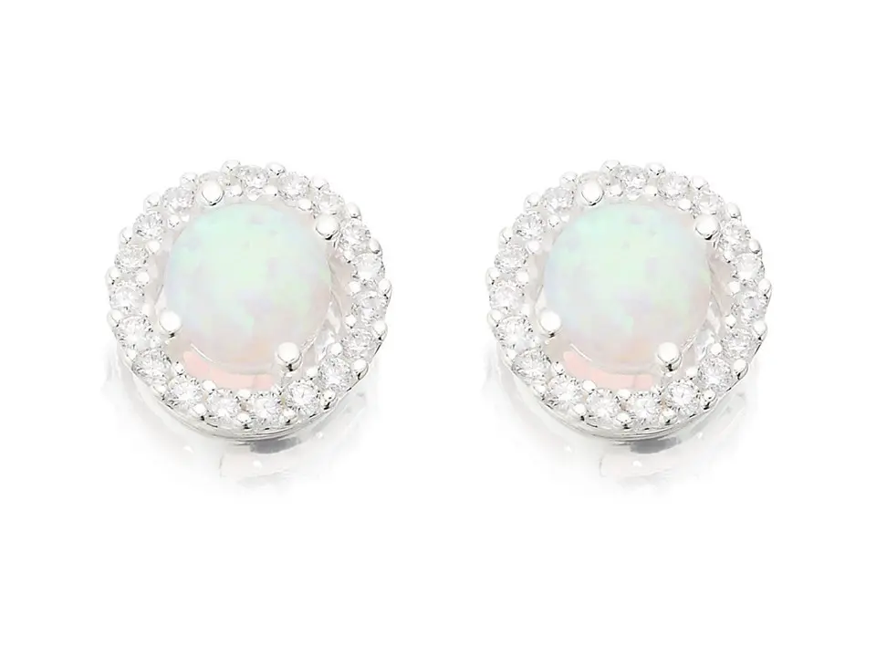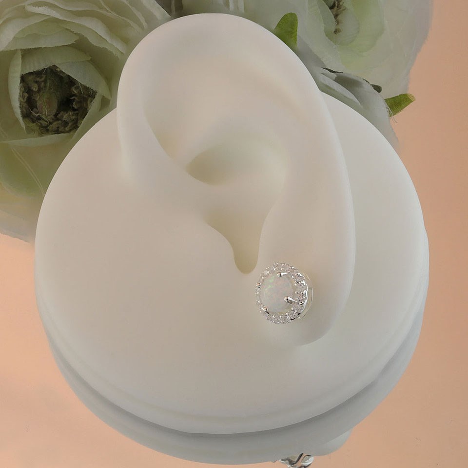 Silver Imitation Opal And Cubic Zirconia Cluster Stud Earrings - 10mm - F0468