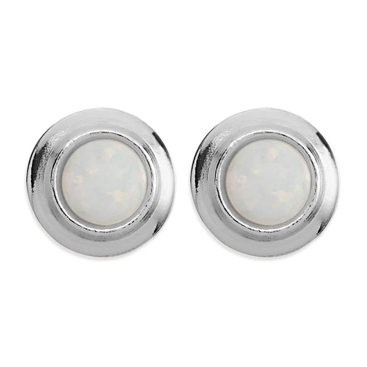 Silver Imitation Opal Stud Earrings - 7mm - F04049
