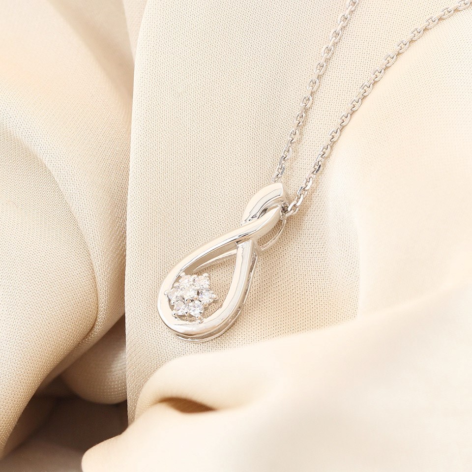Silver Lab Grown Diamond Cluster Teardrop Necklace - F9809