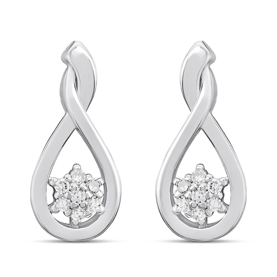 These elegant 13mm sterling silver teardrop stud earrings features a shimmering cluster of 7pts of lab-grown diamonds meticulously arranged to form earrings that catch the light from every angle.