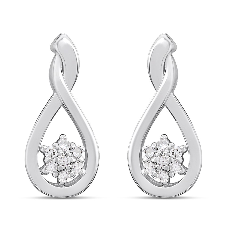 Silver Lab Grown Diamond Cluster Teardrop Stud Earrings - F9810