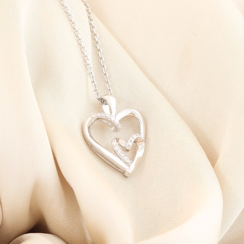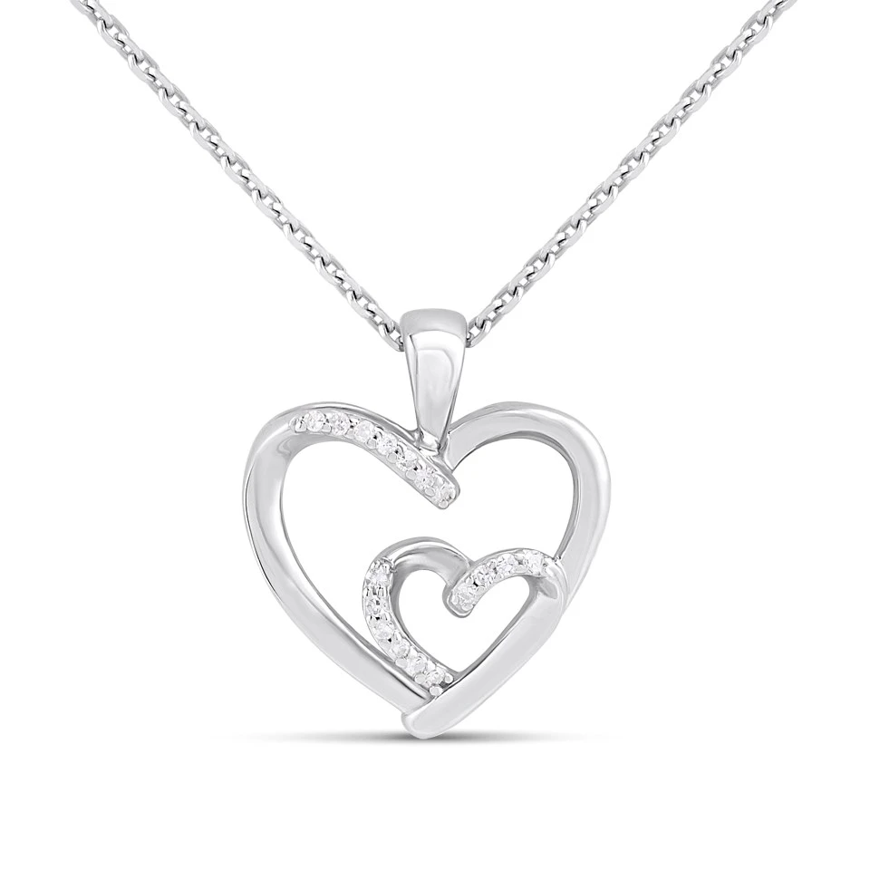 Silver Lab Grown Diamond Double Heart Necklace - F9814