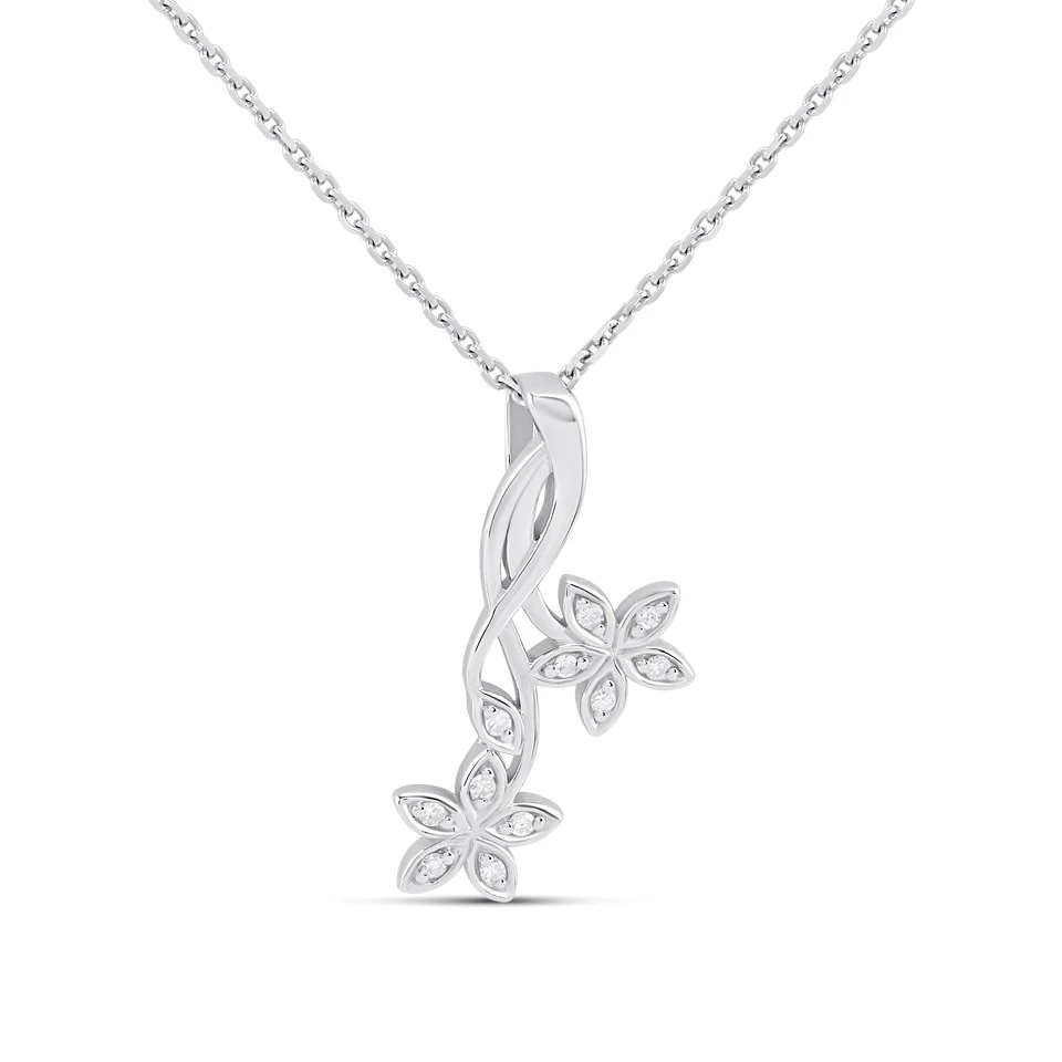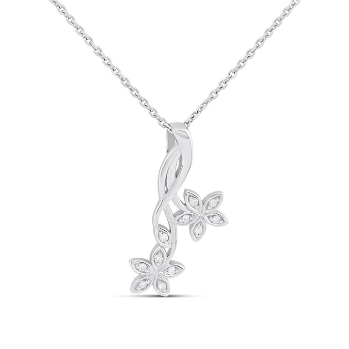 Celebrate connection and beauty with this elegant 23mm silver pendant showcasing two sculpted blooms gracefully linked and accented with 5pts of lab-grown diamonds. Perfect for everyday wear.