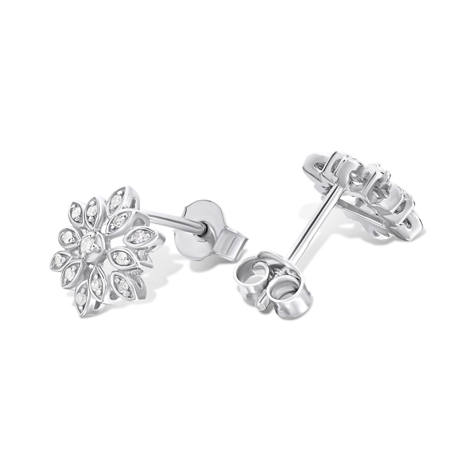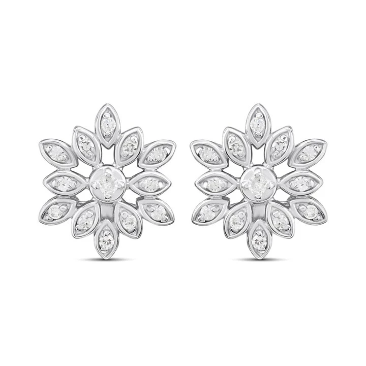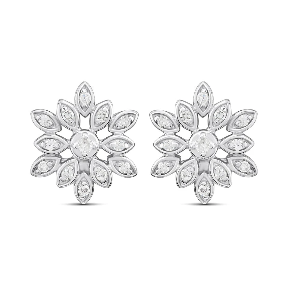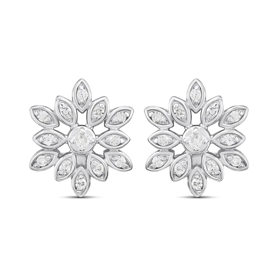 Silver Lab Grown Diamond Flower Stud Earrings - F9801