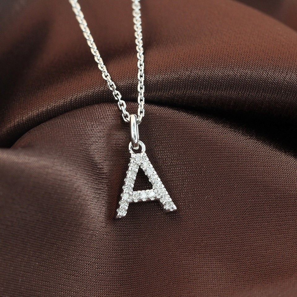 Silver Lab Grown Diamond Initial Necklace - A - F9823
