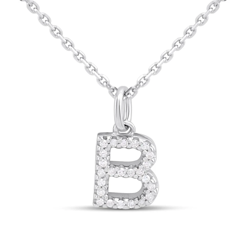 Silver Lab Grown Diamond Initial Necklace- B - F9834