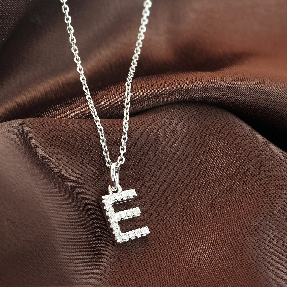 Silver Lab Grown Diamond Initial Necklace- E - F9825