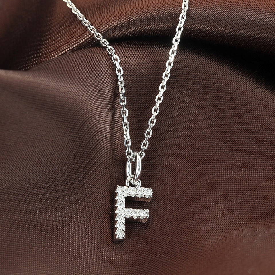 Silver Lab Grown Diamond Initial Necklace- F - F9836