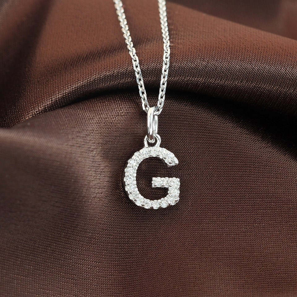 Silver Lab Grown Diamond Initial Necklace- G - F9837