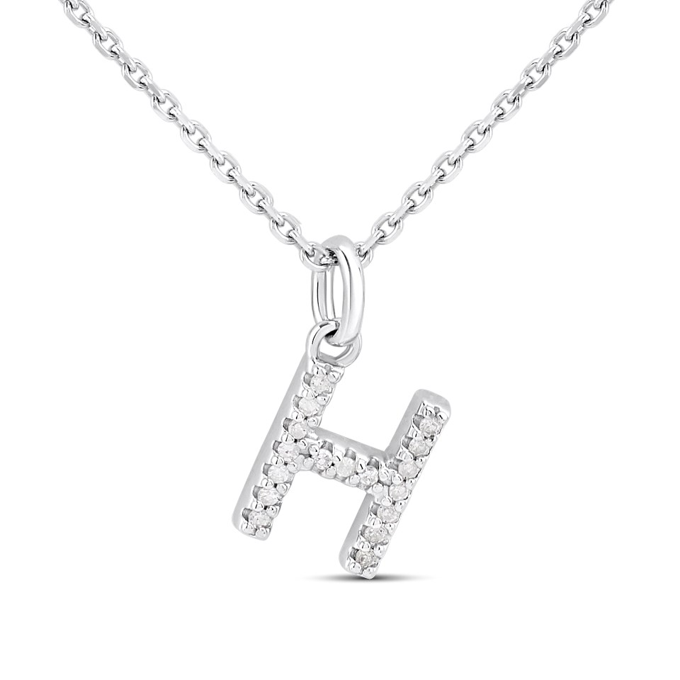 Silver Lab Grown Diamond Initial Necklace - H - F9838