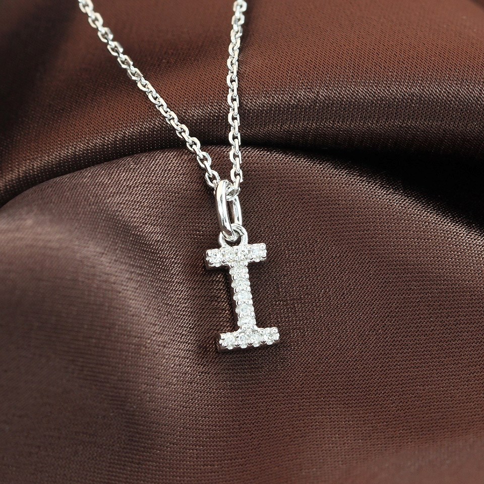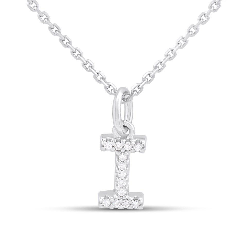 Silver Lab Grown Diamond Initial Necklace- I - F9839
