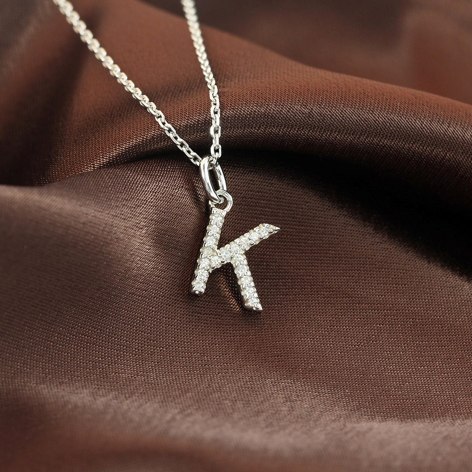 Silver Lab Grown Diamond Initial Necklace- K - F9840