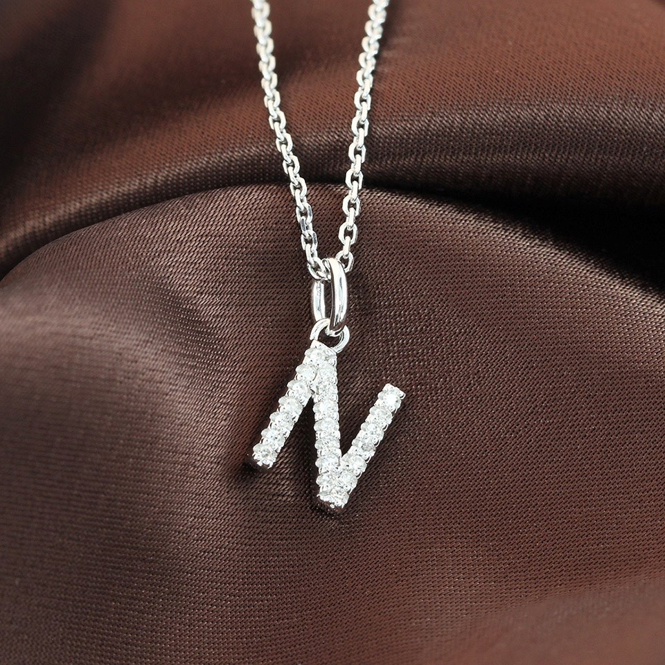 Silver Lab Grown Diamond Initial Necklace- N - F9841
