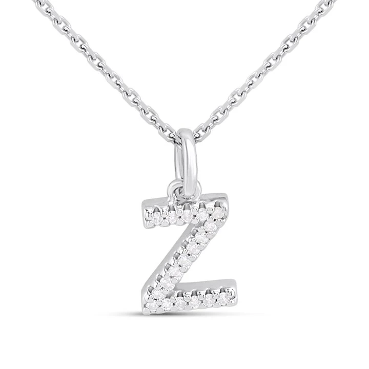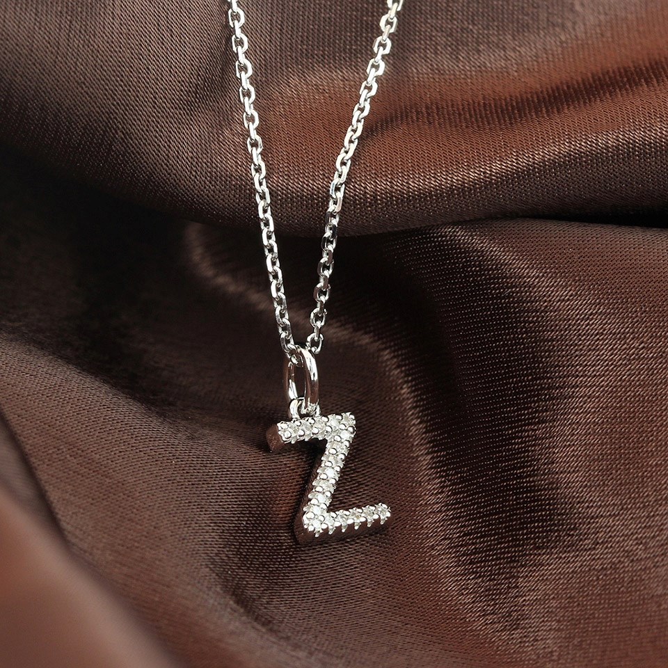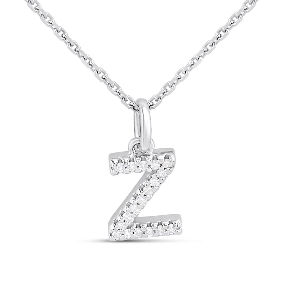 Silver Lab Grown Diamond Initial Necklace- Z - F9851