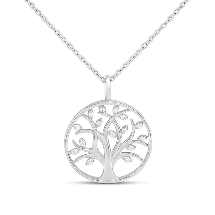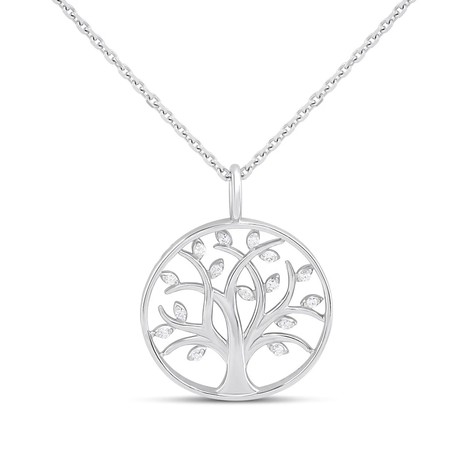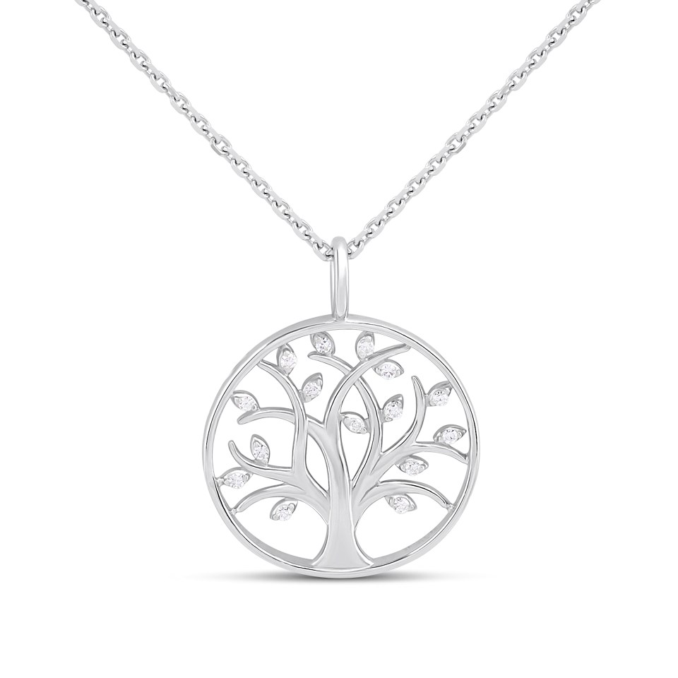 Silver Lab Grown Diamond Tree of Life Necklace - F9816