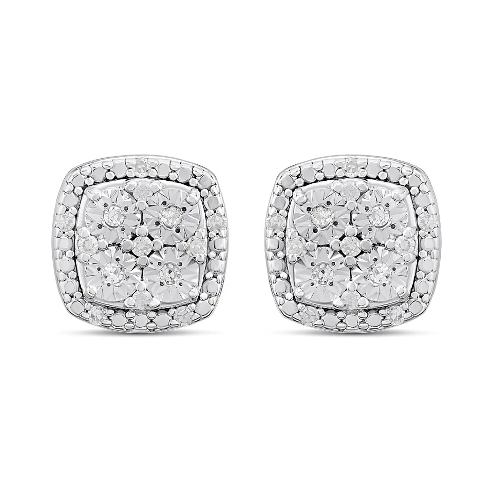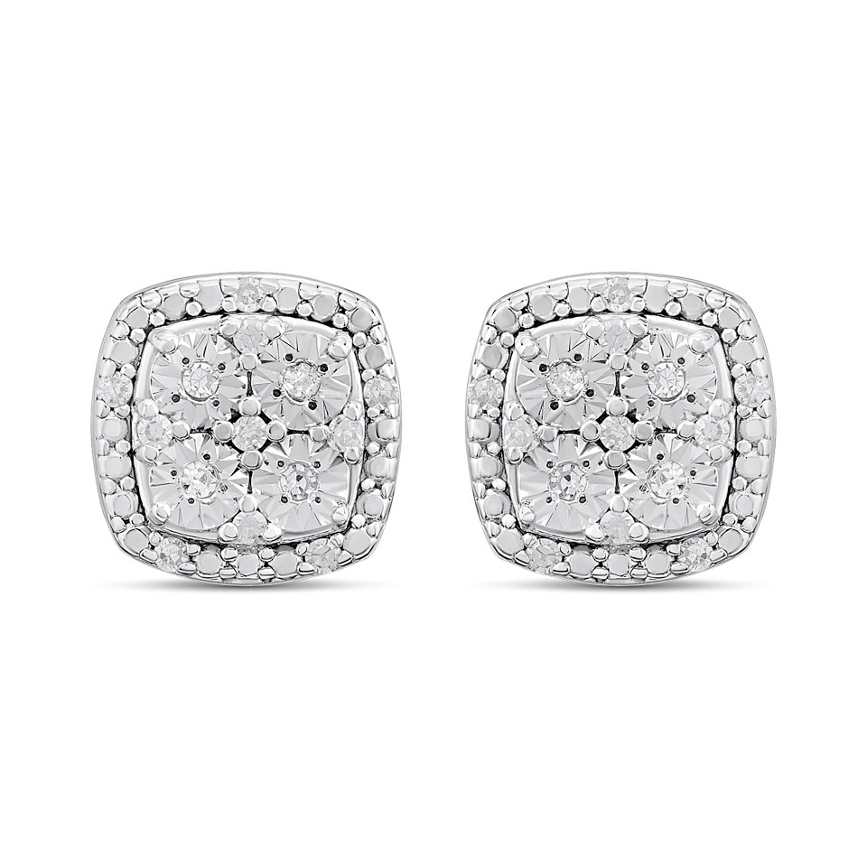 Silver Lab Grown Diamonds Illusion Set Cushion Stud Earrings - F9807