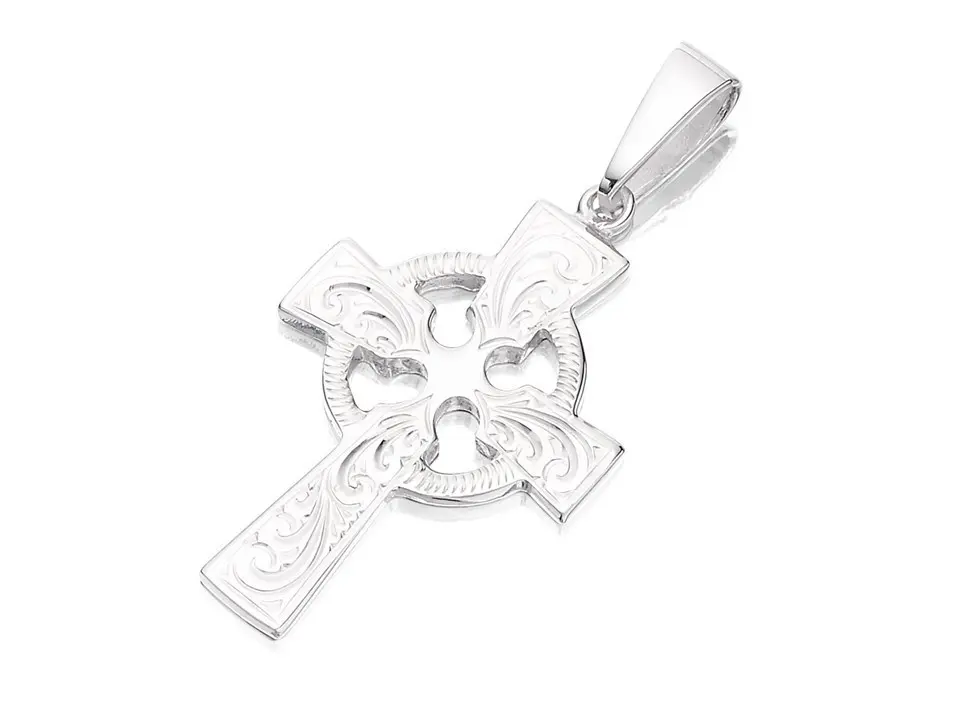 Silver Large Heavyweight Engraved Celtic Cross - 35mm - Z4019