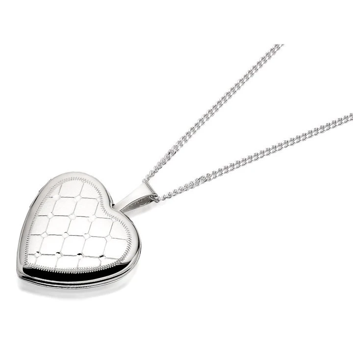 Silver Lattice Heart Locket And Chain - F4353