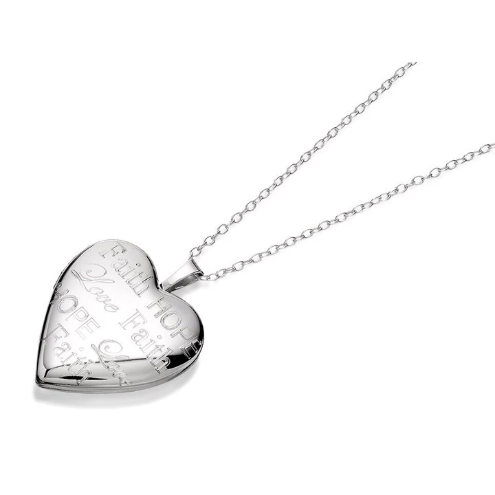 Silver Love, Faith, Hope Heart Locket And Chain - F4301