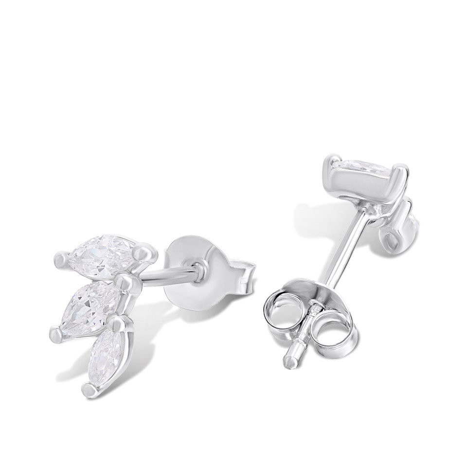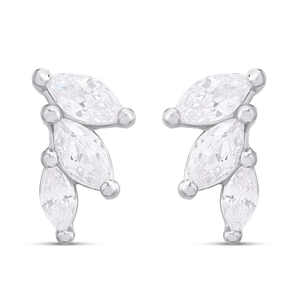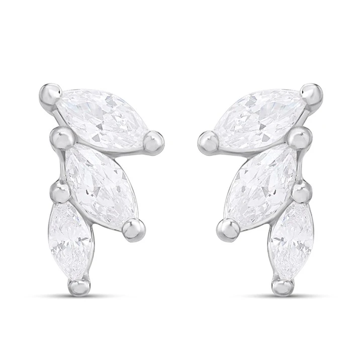 Silver Marquise CZ Trio Stud Earrings - F04232