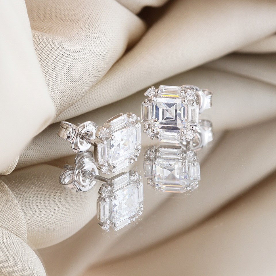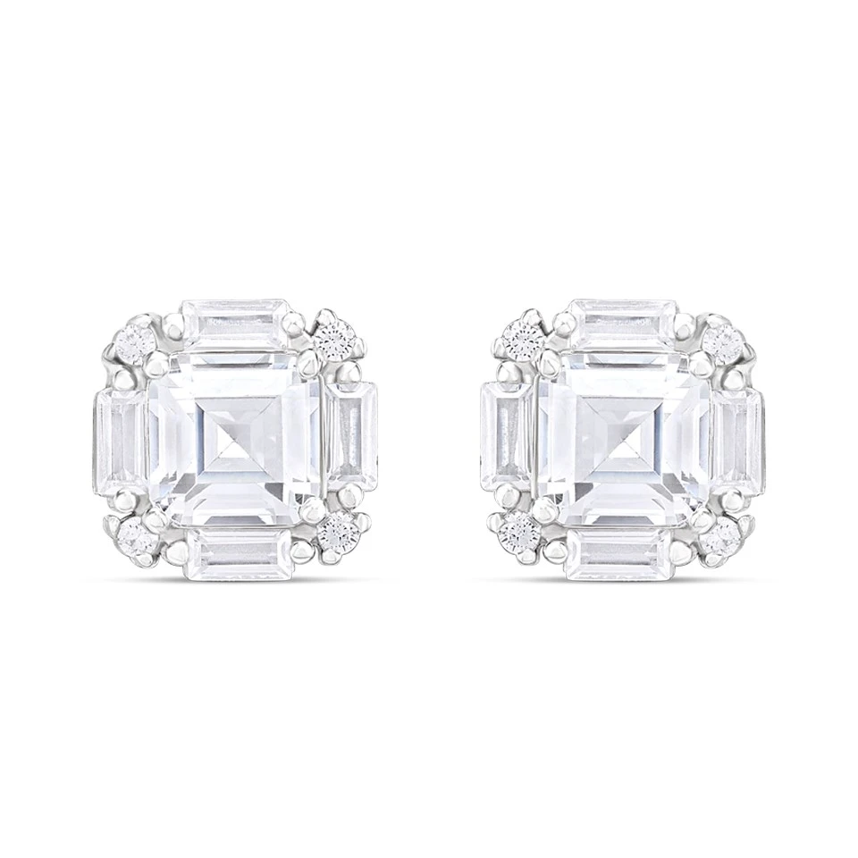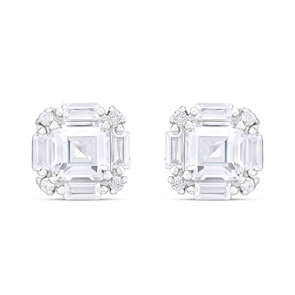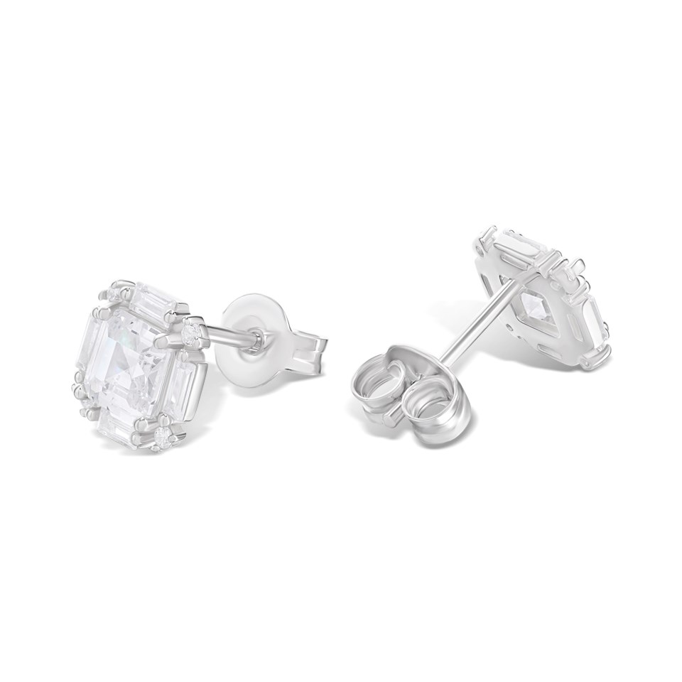 Silver Mixed Cut Cushion CZ Stud Earrings- 8mm - F04223