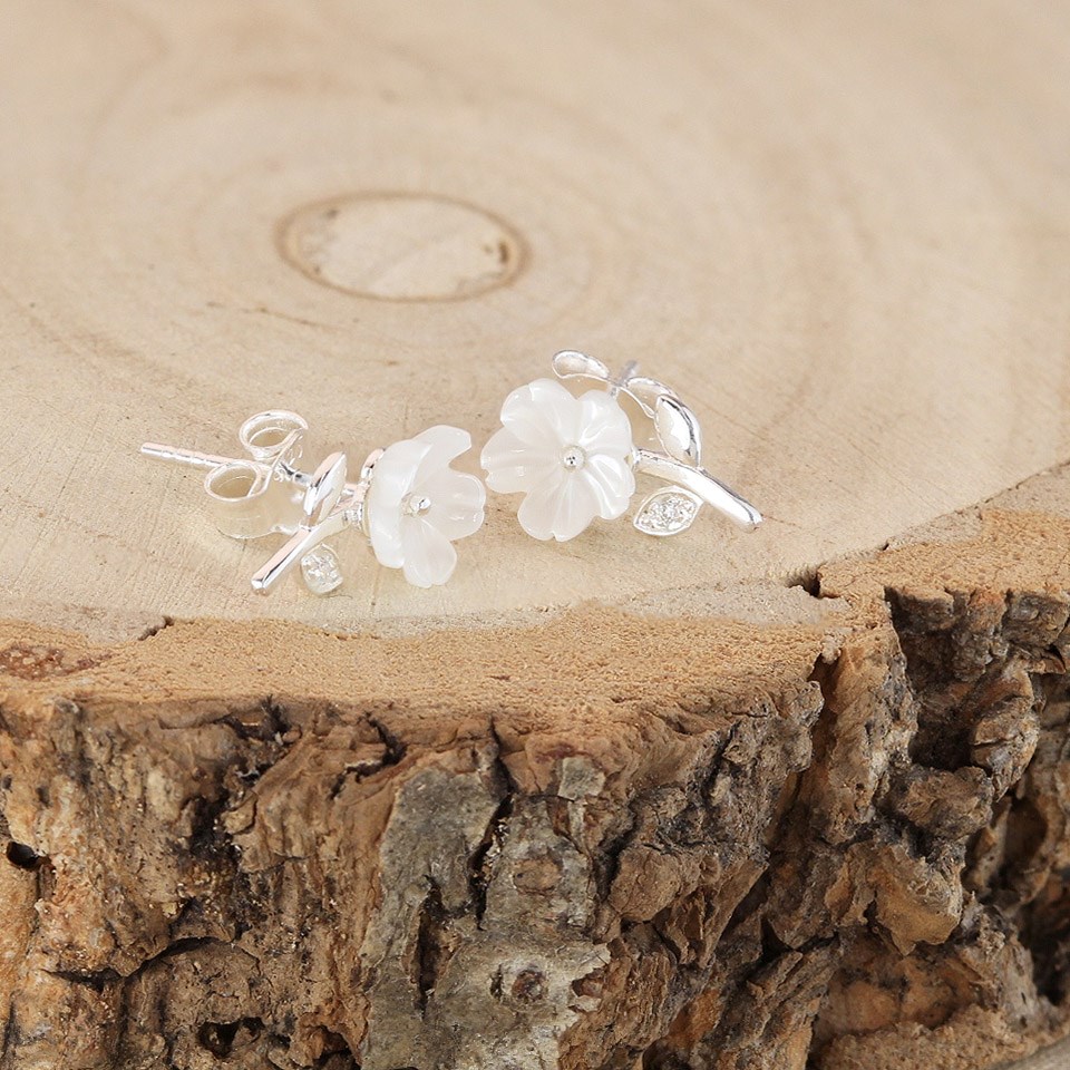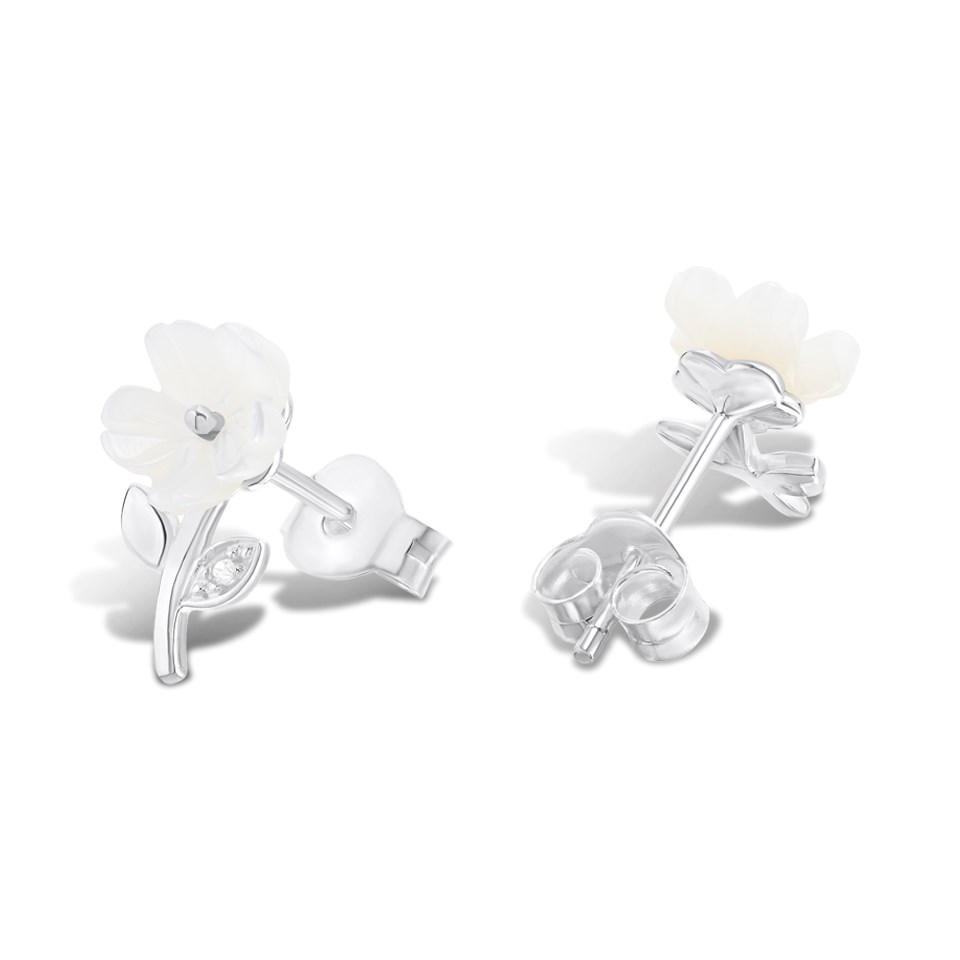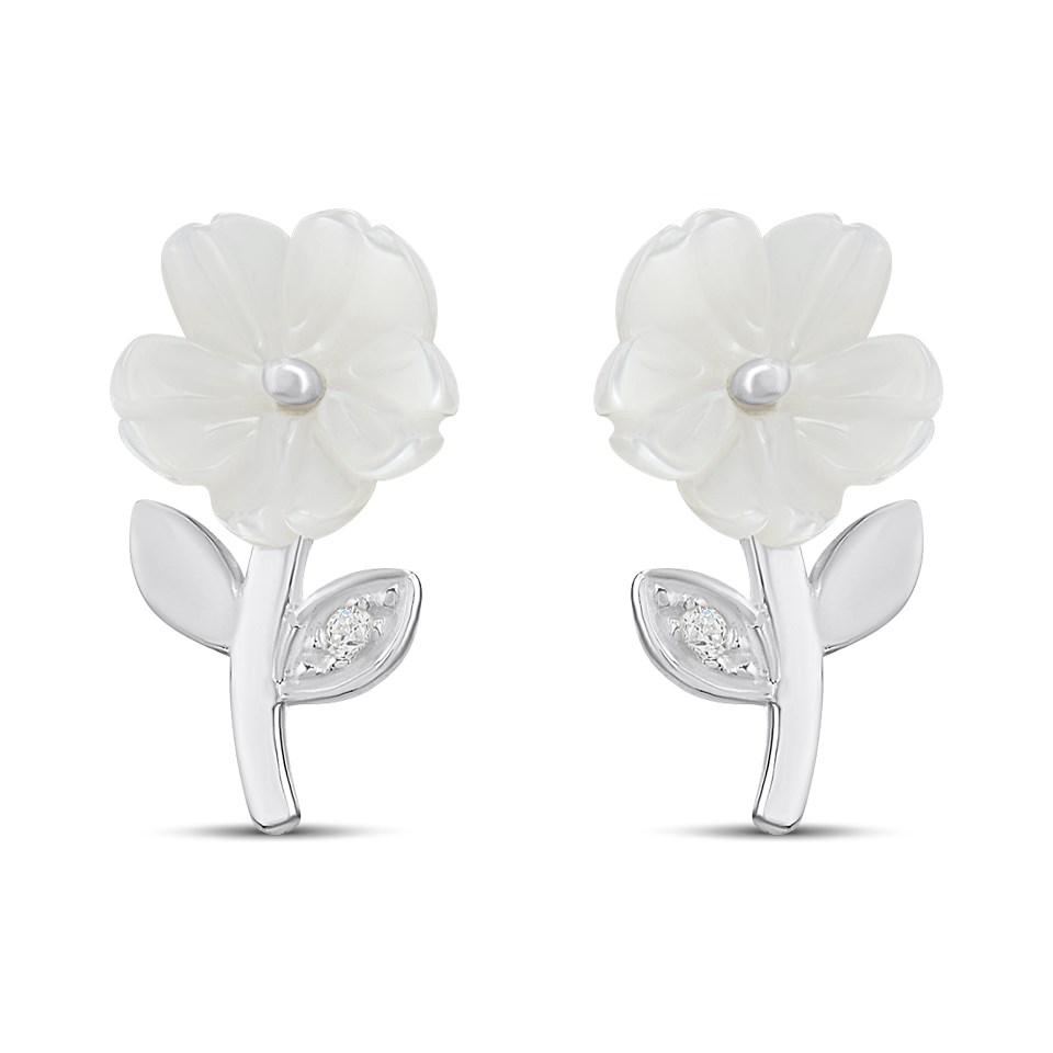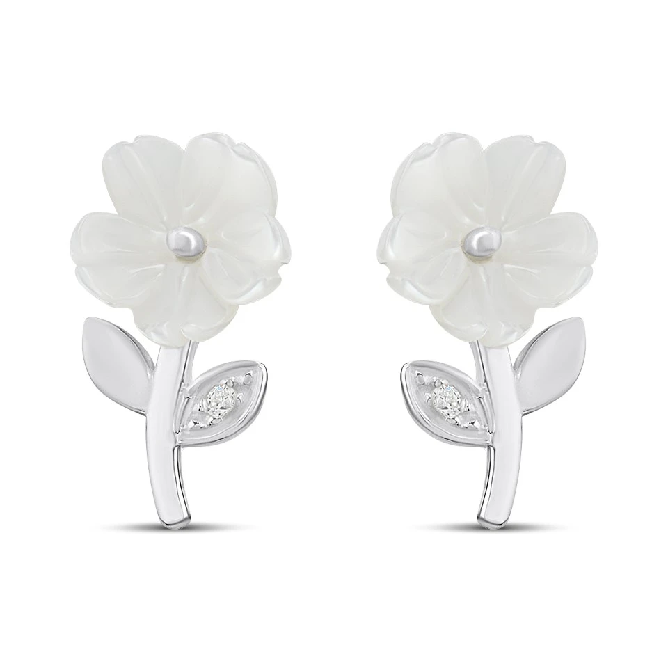 Silver Mother Of Pearl CZ Flower Stud Earrings - F04231