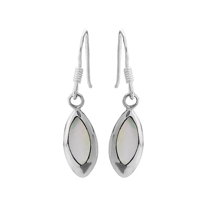 Silver Mother Of Pearl Hook Wire Earrings - 30mm drop - F08006
